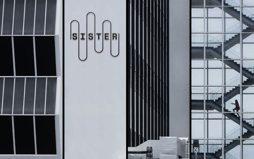 The logotype is equally inspired, drawing from The Manchester Code, a data signalling system developed at the University of Manchester in the late 1940s. The flowing line that wraps around the letterforms in the Sister logotype reflects the district’s porous boundaries, symbolising connectivity and movement, much like the River Medlock that runs beneath the site.