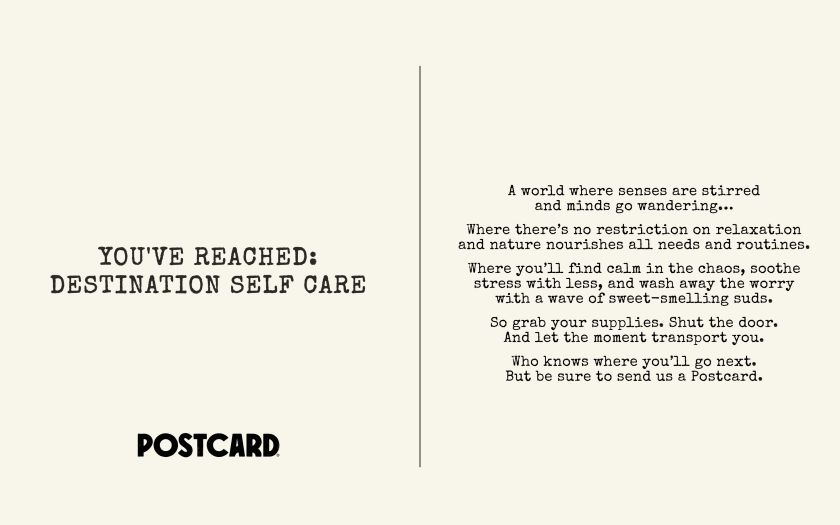 Robot Food has curated a tone of voice for Postcard that balances sensorial, romantic language with unexpected twists. The aim is to surprise consumers with an experience that defies typical beauty stereotypes.